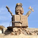 Vic.- Església barroca del Carme. La portalada es d'arc de mig punt flanquejada per columnes i la imatge de la Mare de Déu dins una fornícula (8/2000)