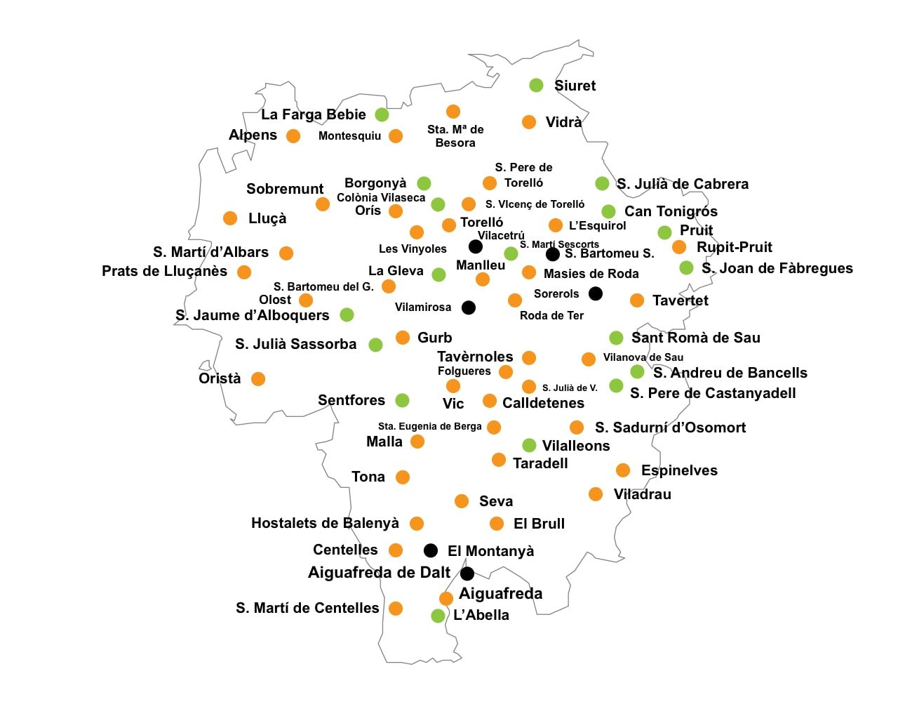 Comarca de 1019 Kms.2, una vegada segregada Collsuspina al crear-se la comarca del Moianès el juliol del 2015. Està situada a l’extrem NE de la Depressió Central Catalana discorrent el riu Ter pel NE. El Collsacabra i el Lluçanès son antigues demarcacions històriques, però per la seva poca extensió i població no varen arribar a formar comarca pròpia.